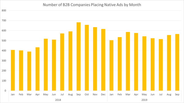 Since that post, the number of B2B companies placing native ads each month has continued to rise.