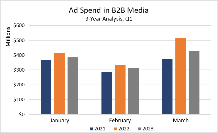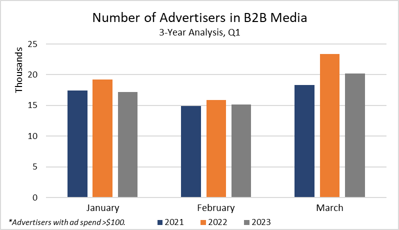 Here’s how those advertisers invested in B2B media in Q1 2023.