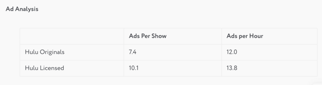 In contrast, viewers see 4-9 ads per hour on Peacock and almost always 10 or more on Hulu (as of 2021).