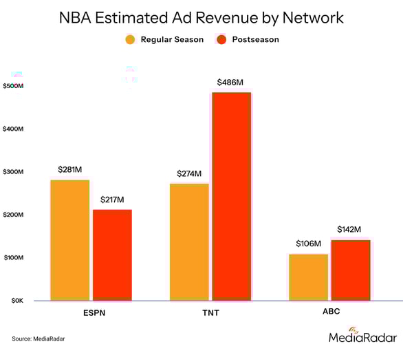 While ABC had the highest cost-per-ad, ESPN and TNT earned more thanks to the volume of games aired.
